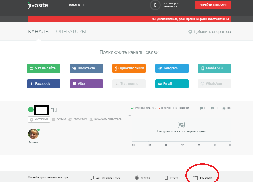 Для этого заходим в приложение JivoSite. Я работаю с компьютера, поэтому мой вариант — «Веб версия».