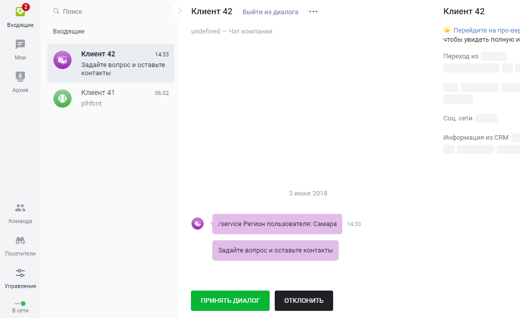 Функции. История общения с клиентами и каждый полученный лид сохраняются во встроенной CRM-системе. Также доступна аналитика по обращениям: можно отследить источник перехода на сайт. А статистика по операторам и сбор обратной связи от клиентов помогают оценить качество обслуживания.