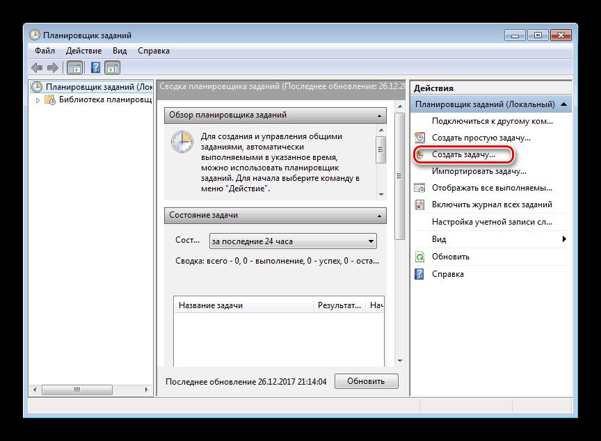 Запланируем загрузку программы Dropbox через 2 минуты после загрузки системы. Открываем планировщик заданий Windows