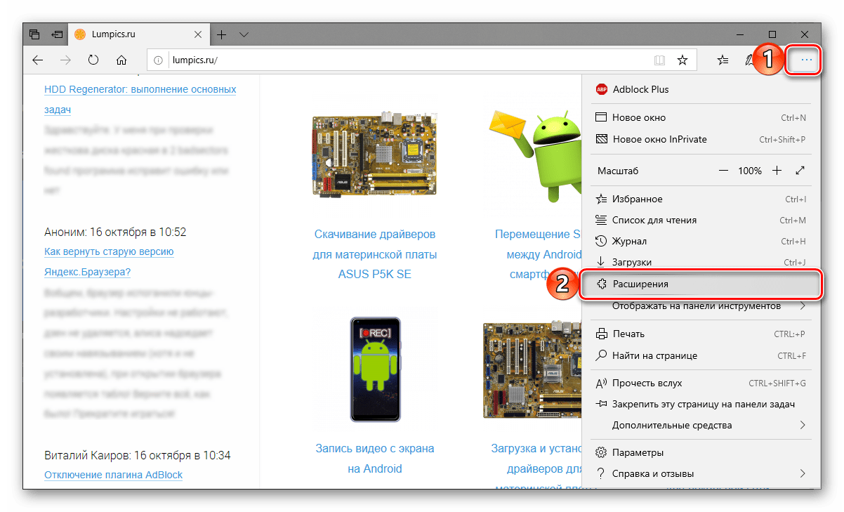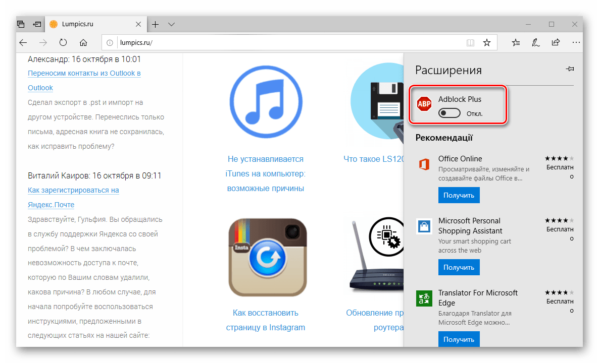 Как установить расширение Adblok plus для блокировки рекламы в браузер EDGE ОС Windows 10