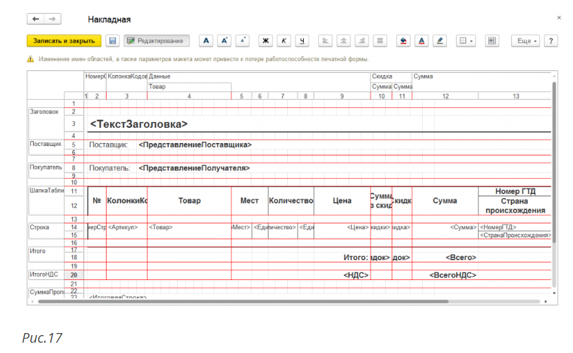 Следует обратить внимание на то, что ячейки макета содержат имена параметров, а не только текст, заключены эти параметры в скобки . Благодаря параметрам макета в нужную ячейку можно вводить необходимые данные, но не стоит забывать, что в модуле программы должны быть указаны эти значение параметров.