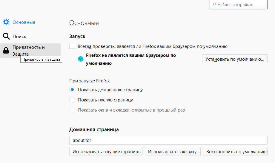 Ну, а теперь перейдите в раздел «Приватность и защита» и затем выберите один из трех уровней безопасности для серфинга сайтов в сети Tor: