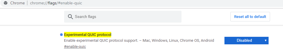 Показываем как отключить QUIC на примере браузера Google Chrome: