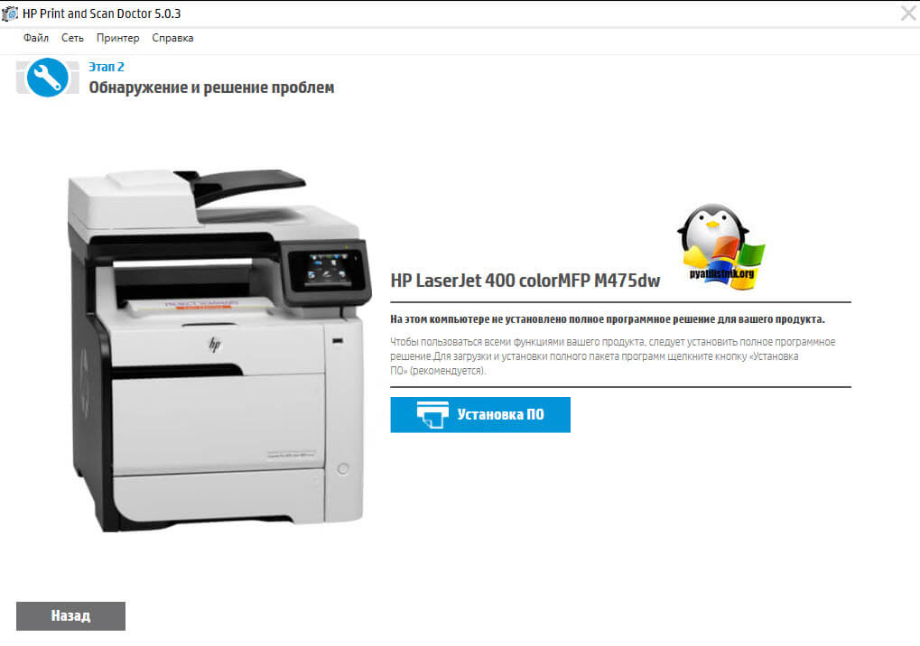 Запустите утилиту HP Print and Scan Doctor. У нее алгоритм очень простой. На первом шаге она ищет установленные принтеры, а на втором устраняет причину, почему он не работает в вашей Windows 10.