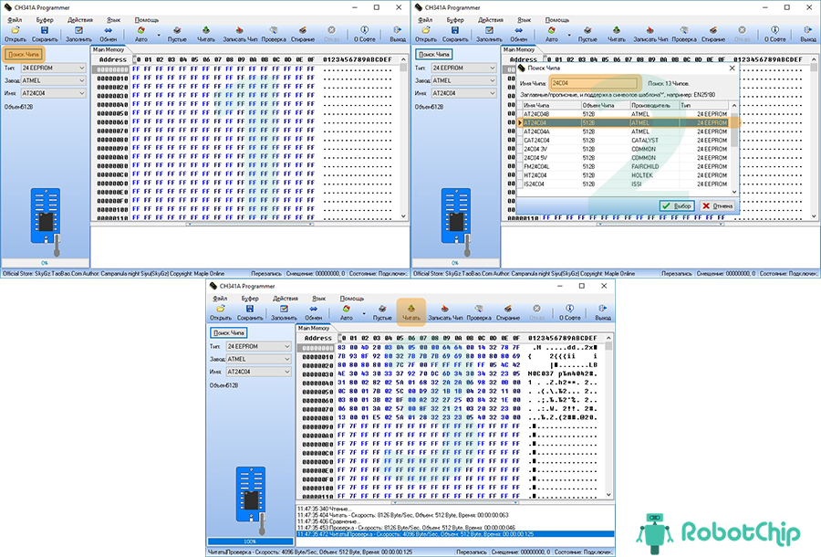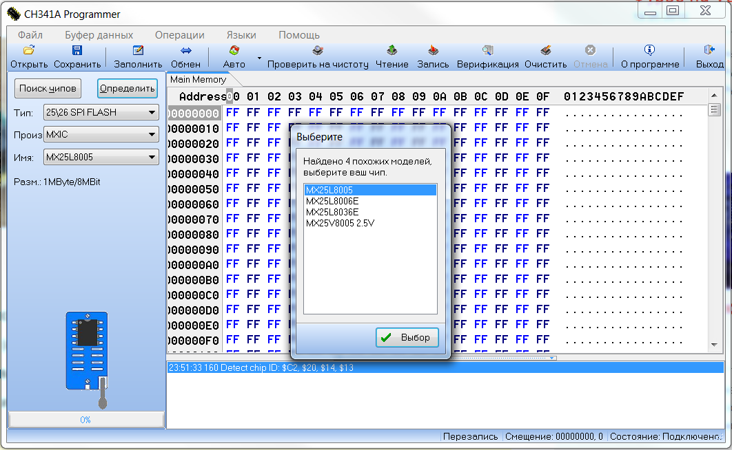 3 Чтение и запись ПЗУ с помощью программатора CH341A