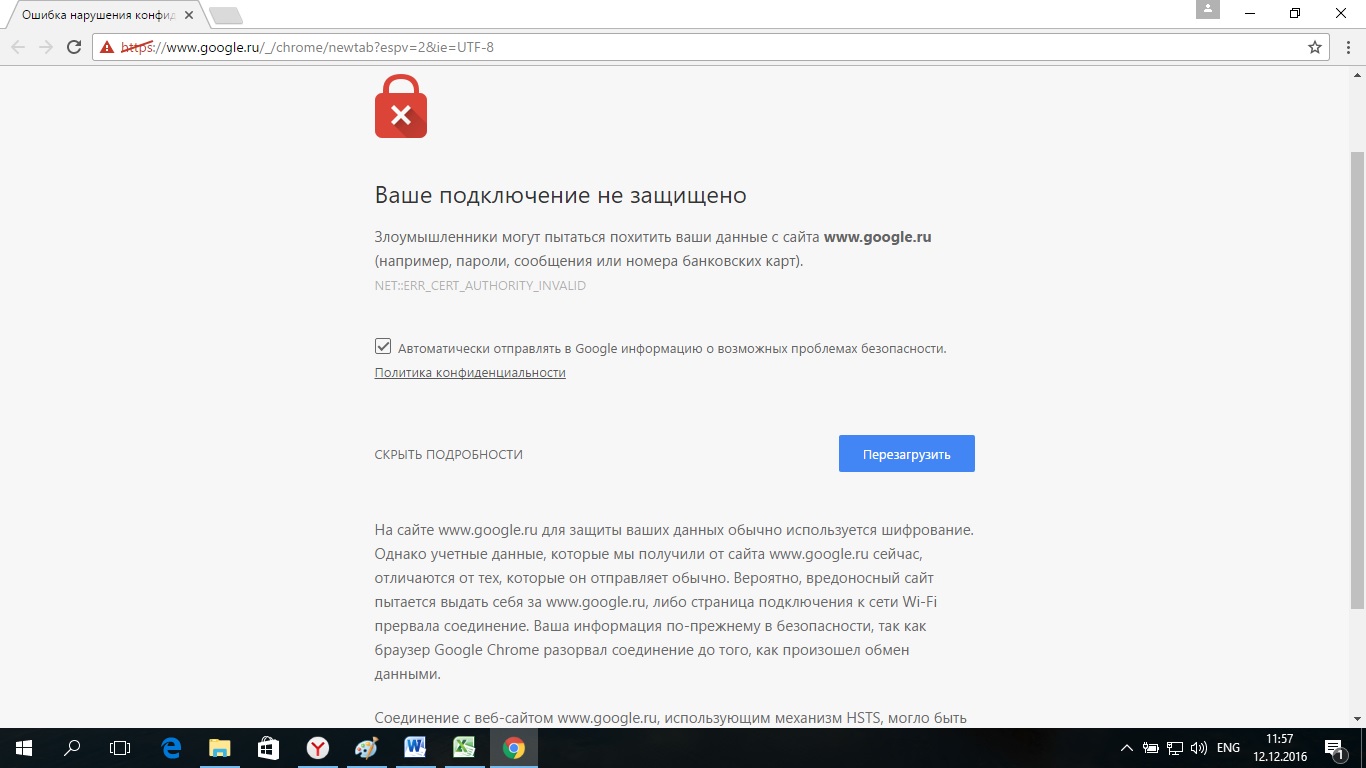 При работе через общедоступные Wi-Fi используйте частные виртуальные сети (VPN). Хром воспринимает открытые соединения как угрозу безопасности, и выдает ошибки вроде «net err cert authority invalid», «Соединение не защищено».