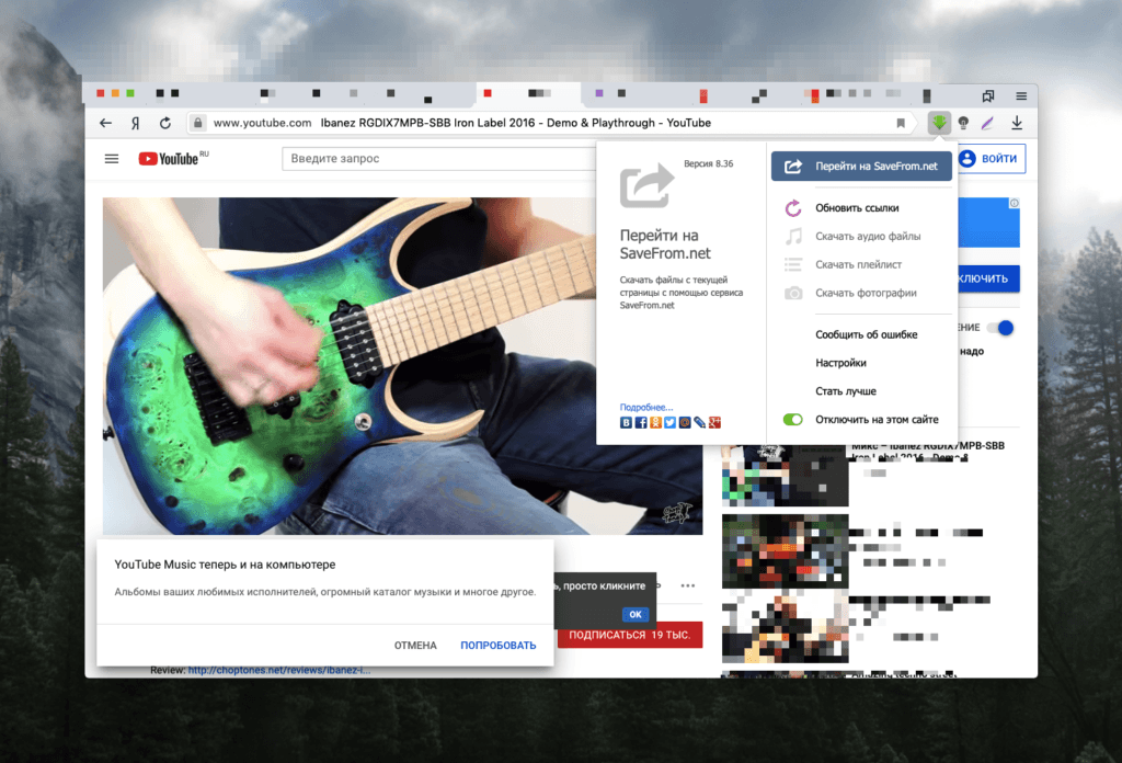 В случае с YouTube расширение предлагает зайти на сайт SaveFrom.net, где обрабатывает ролик и предлагает ссылку для его загрузки. При этом аудио и фото скачиваются напрямую из расширения