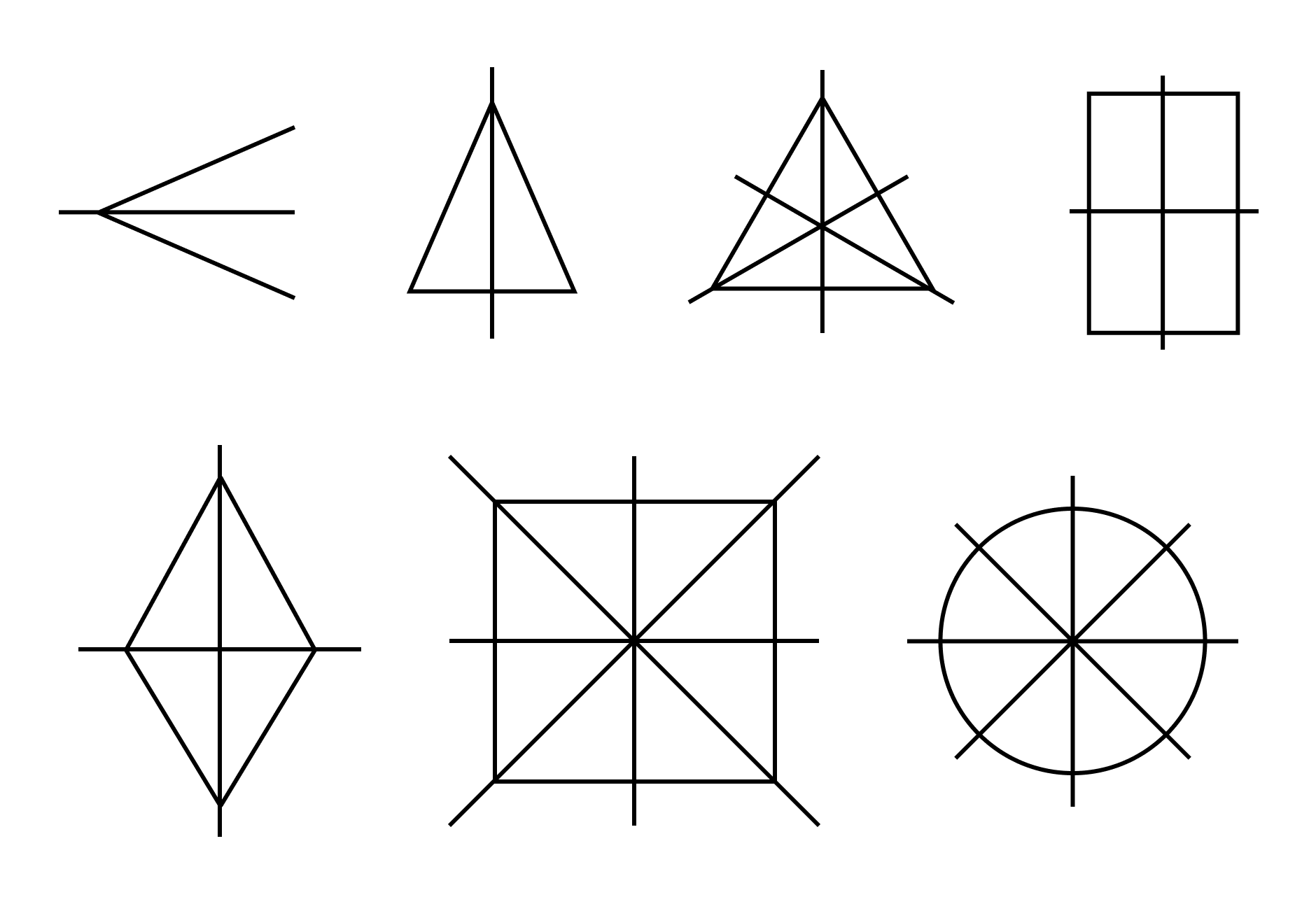 Вернемся к рисунку: на нем мы видим фигуры, имеющие ось и центр симметрии.