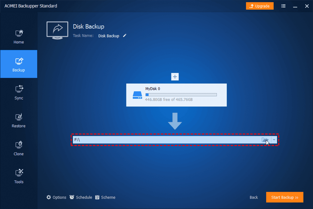 Prepare an external hard drive which will be used to store disk backup image file, and make sure it can be recognized. AOMEI Backupper supports backup to external hard drives, USB flash drives, NAS devices and Network shared folders.