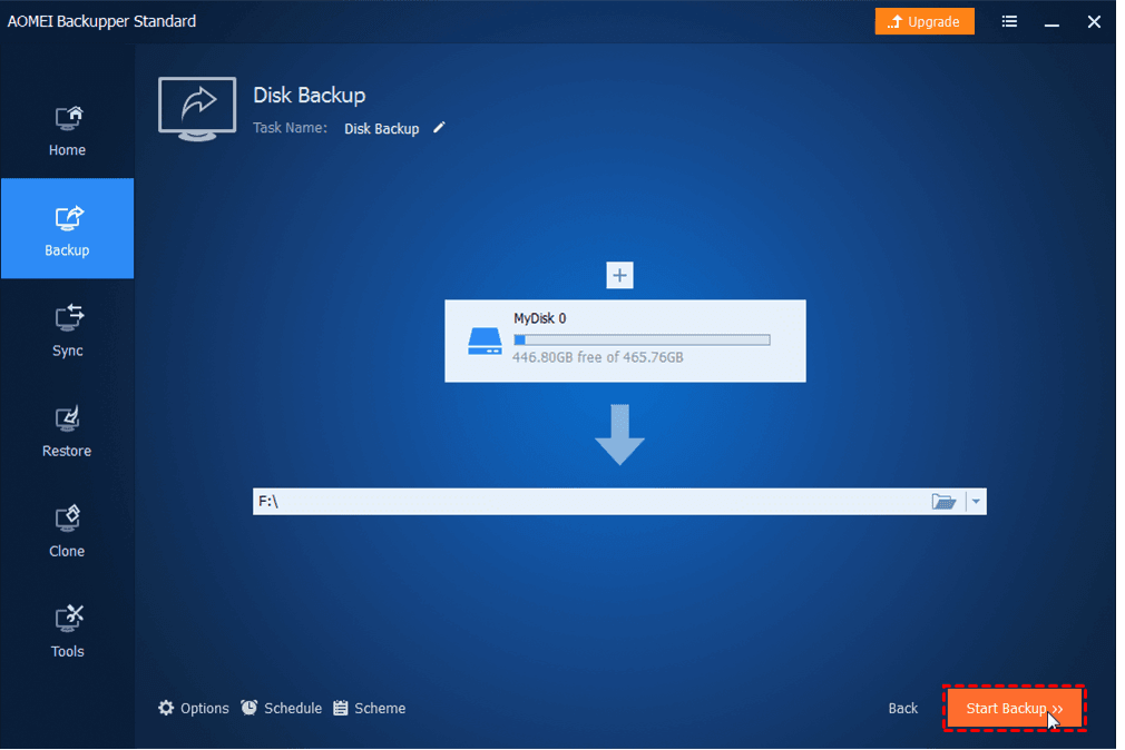 To backup hard disk, free backup software like AOMEI Backupper Standard is highly recommended. It is very easy-to-use yet feature-rich and supports a large range of disk types such as MBR disk, GPT/UEFI disk, dynamic disk, hardware RAID, SSD, etc. The key features include system backup, disk backup, file backup, incremental/differential backup, automatic backup, dissimilar hardware restore, disk clone and so on.