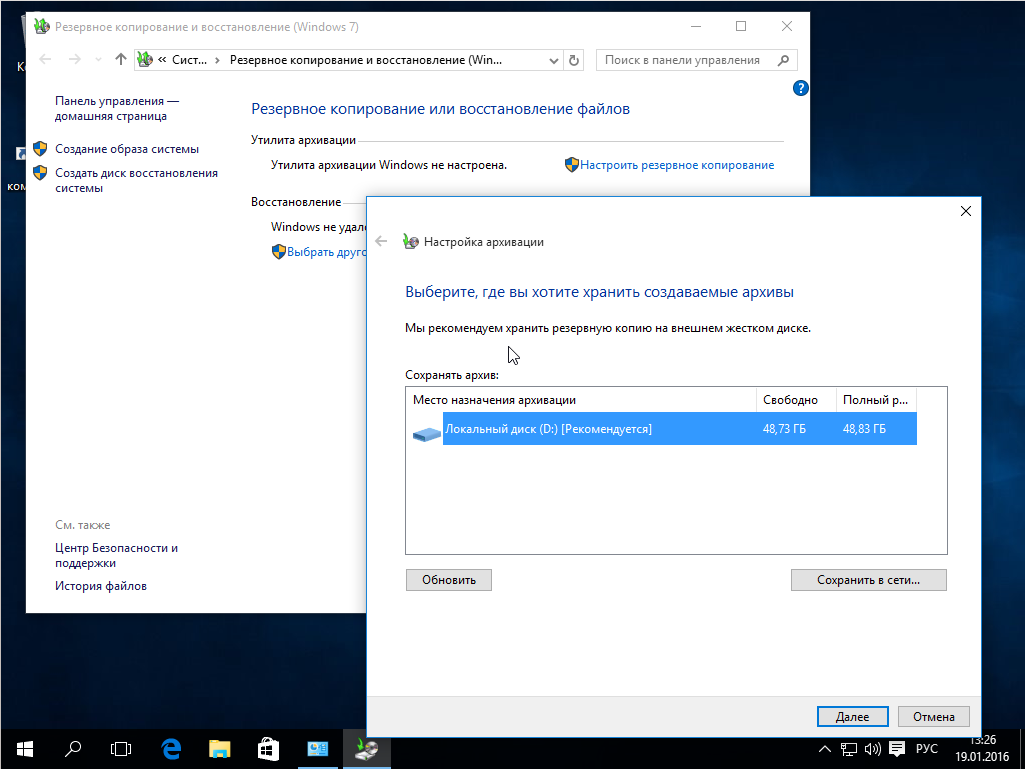 Поэтому, если будете работать с системным диском, скопируйте важные файлы на внешний носитель, и, если есть возможность, создайте резервную копию операционной системы с помощью соответствующего пункта панели управления: