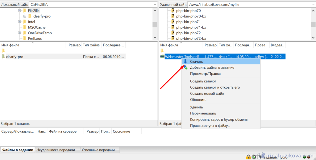 Обратно будет также, только щелкнув правой кнопкой нажимаем скачать, файл сохранится на компьютер.