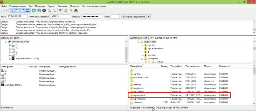 Отличным решением будет установка бесплатной программы Filezilla. Это приложение на протяжении долгого срока является популярным среди пользовательского круга вебмастеров.
