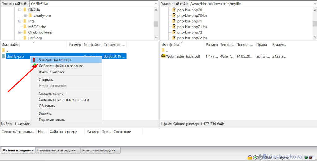 Или вызвав правой кнопкой мыши контекстное меню -> Закачать на сервер.