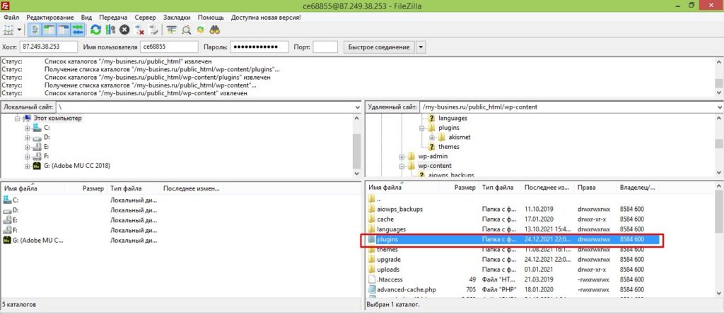 Теперь вы знаете, как настроить FTP соединение и при необходимости изменить права на папки с файлами. Уверен, в будущем, вам не раз потребуется, что-то вручную скопировать на сервер или оттуда, на свой комп.