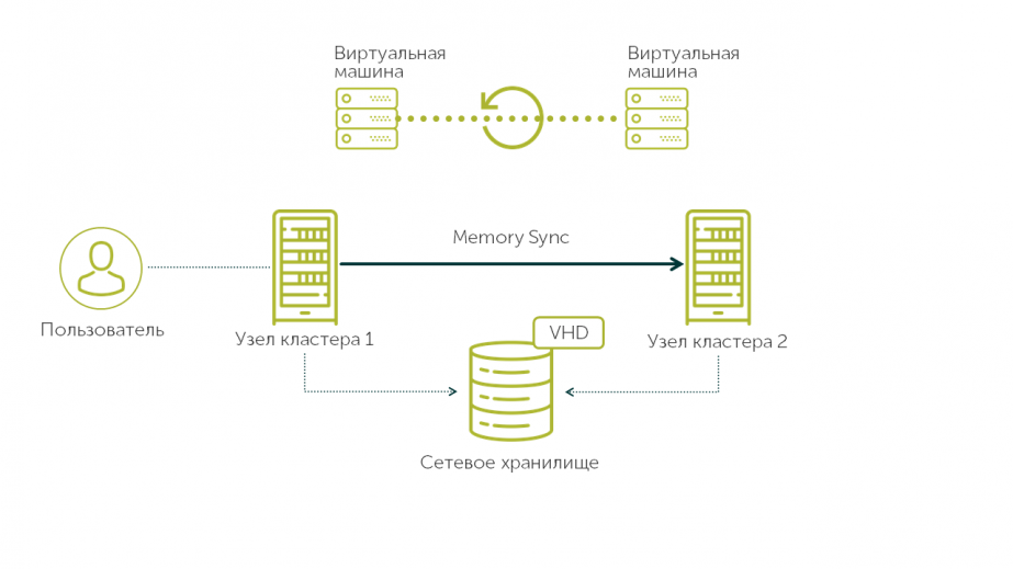 - Конфигурация ВМ копируется с одного узла кластера на другой.
