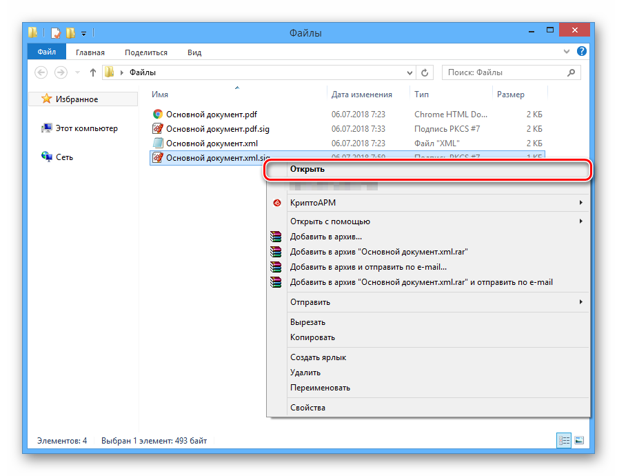 - Заходим в ту папку, где сохранен файл типа sig, выделяем его и нажимаем «Открыть». Щелкаем по файлу, выделив его, нажимаем «Открыть»