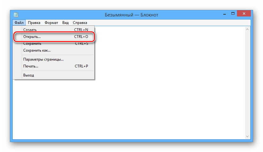 - Notepad — стандартный Блокнот, который есть на каждом компьютере с Windows. Открыть программу можно через Пуск ->Стандартные ->Блокнот, либо просто нажав на файле ПКМ ->Открыть с помощью… и выбрав там блокнот. В программе нужно нажать в меню Файл ->Открыть… и выбрать на компьютере нужный документ. Доступно как редактирование, так и сохранение текста.