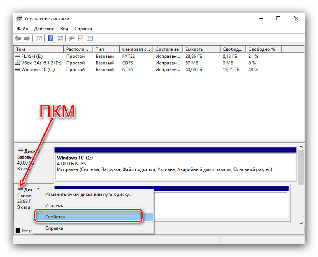 - Далее перейдите в Свойства (выбранного носителя) > Политика.