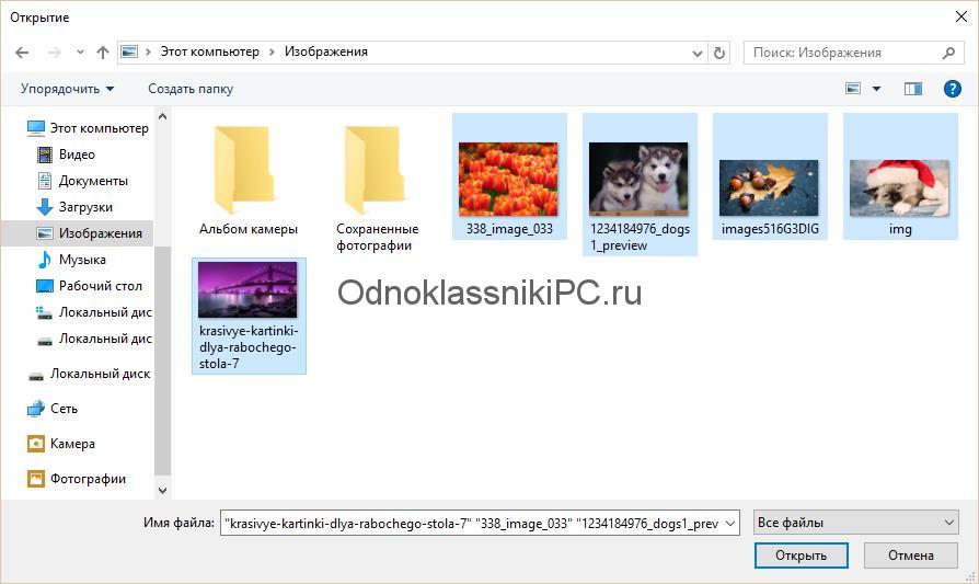 Важно! Если нужно выложить два и более изображения, то вы можете сделать это одновременно. Для этого выделите все нужные файлы в окне выбора, зажав клавишу Ctrl.