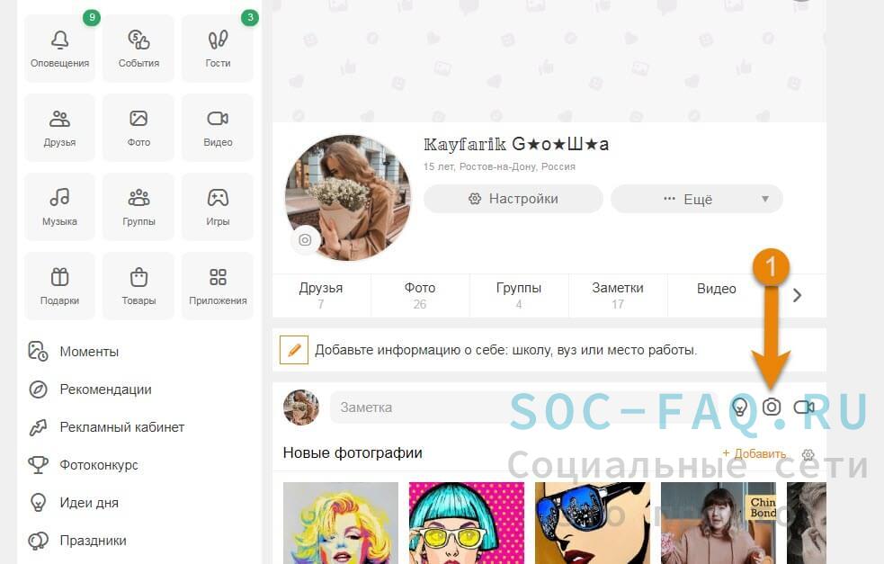 Как сделать фото в одноклассниках?