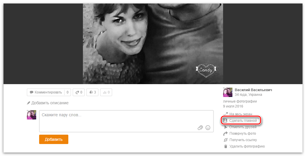 - выбранный снимок теперь является основным на странице в Одноклассниках.