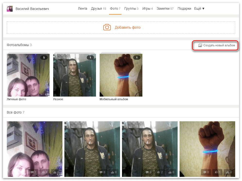 Кликнуть по надписи «Создать новый альбом».