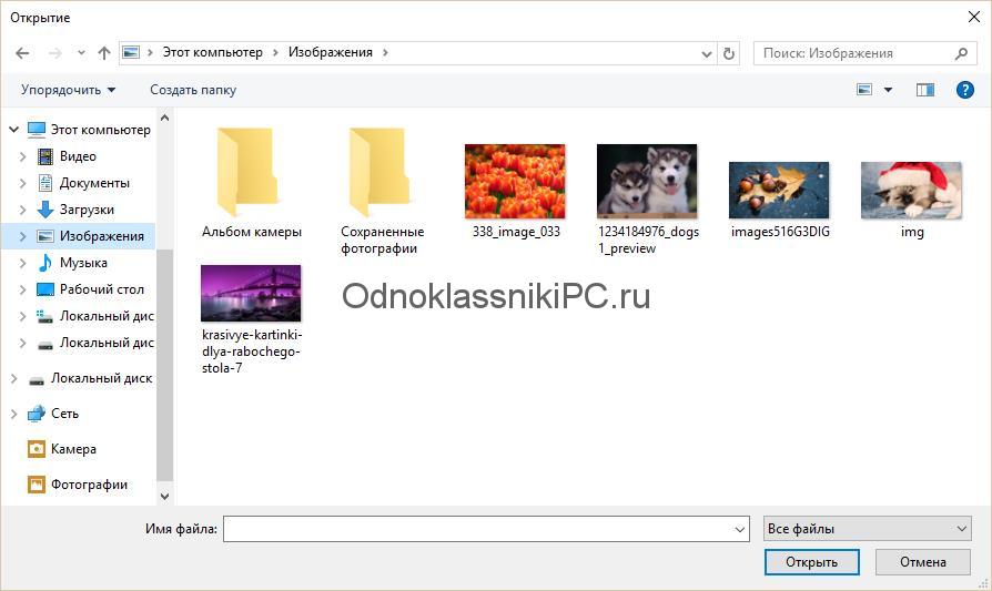 В обоих случаях появится одинаковое окно выбора графических файлов с компьютера.