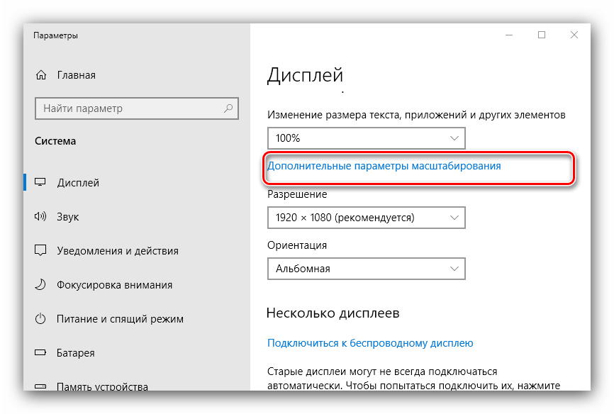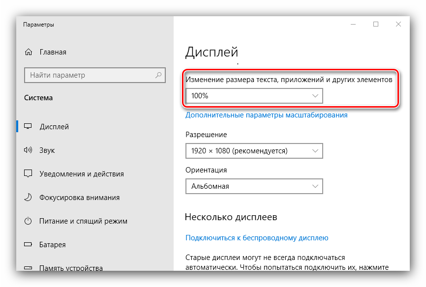 Если изменение разрешения не принесло результатов, тогда причина неполадки может заключаться в неправильно настроенном масштабировании. Исправить его можно следующим образом:
