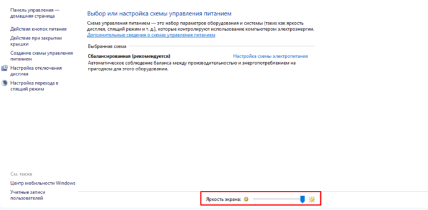 В разделе «Планы, отображаемые на индикаторе батареи», вы можете выбрать план производительности ноутбука. Ниже вы можете заметить надпись «Яркость экрана:». Чтобы увеличить яркость, сдвиньте ползунок вправо, для уменьшения яркости экрана, потяните ползунок влево.