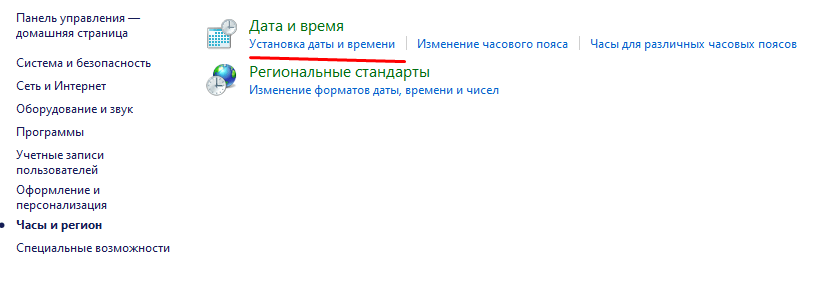 - неправильная настройка часов. Системное время также может сбиваться, изменяться, если пользователь неправильно указал регион при его настройке.
