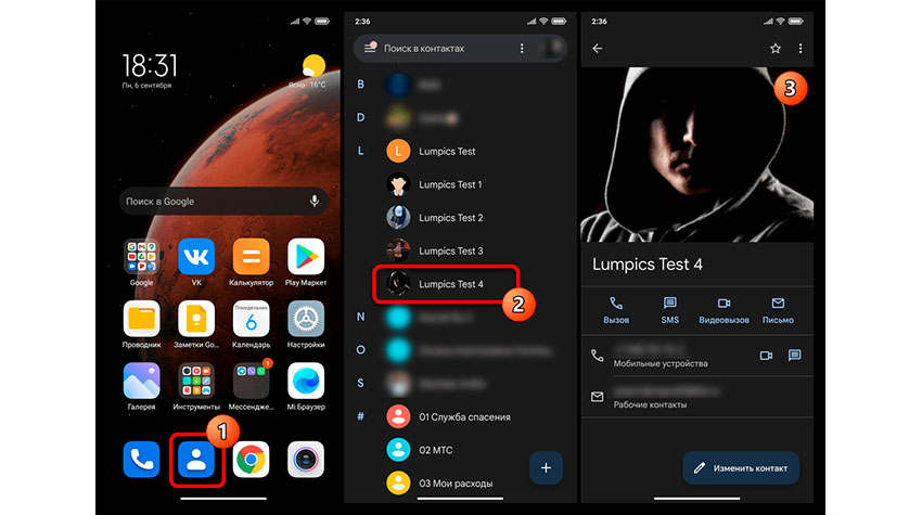 Как поставить фото на контакт в Xiaomi (Redmi)
