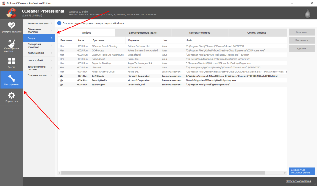 Чтобы воспользоваться CCleaner, выполним следующие действия: