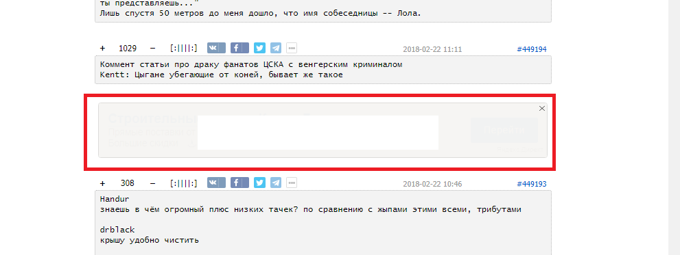 Рис. 6. Удалённый рекламный блок, вместо которого осталось пустое место.