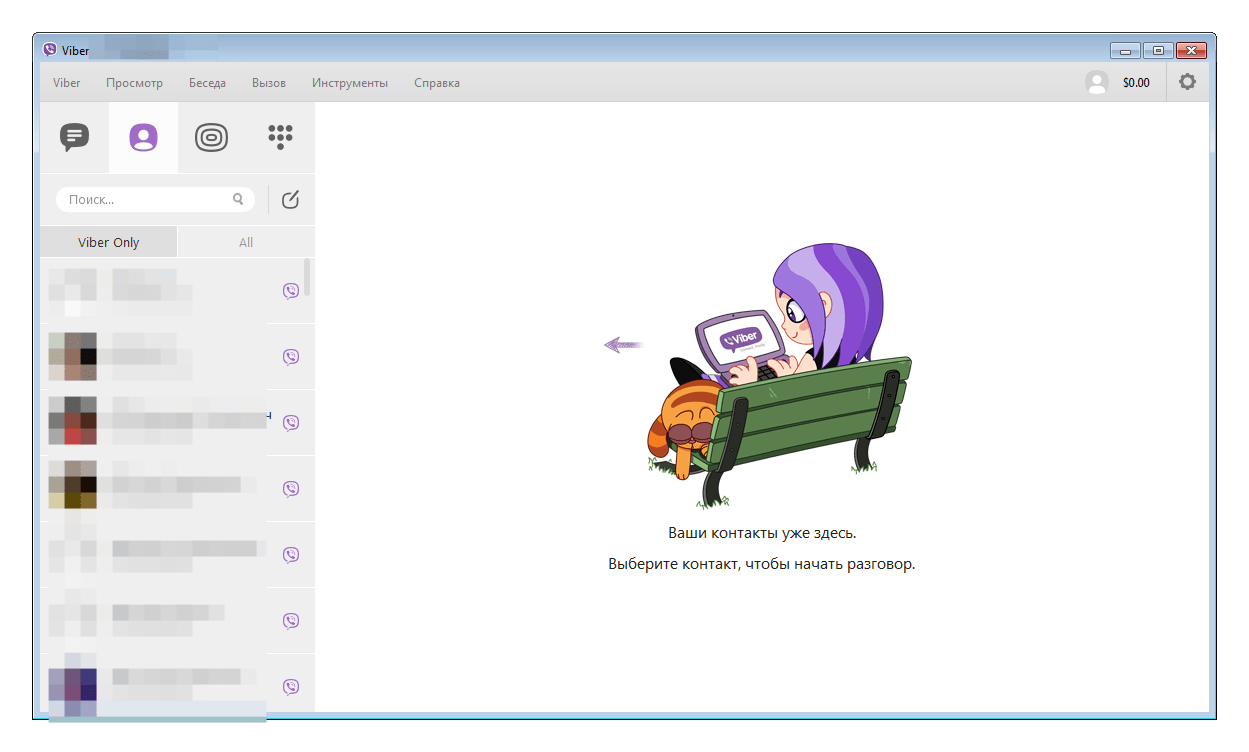 У Viber есть одна интересная фича: синхронизация начинается с момента установки. То есть если вы установили Viber на PC в 10.00, то сообщения, отправленные и полученные в 9.58 в истории вы не увидите. Зато все последующие, вне зависимости от того, запущена была программа или нет, при запуске подхватятся автоматически.