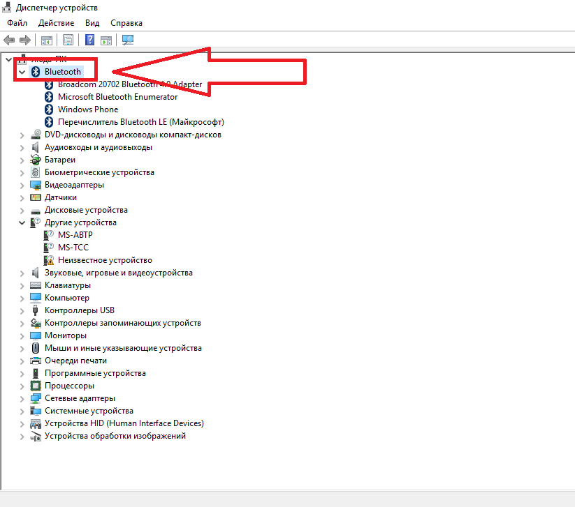 В диспетчере устройств при этом появляется дополнительный раздел «Bluetooth» и имя подключённого адаптера. Если ОС не опознает гаджет, то он будет показан как неизвестное устройство. В таком случае пользователю придётся самостоятельно ставить драйвера. Сделать это можно одним из двух способов: