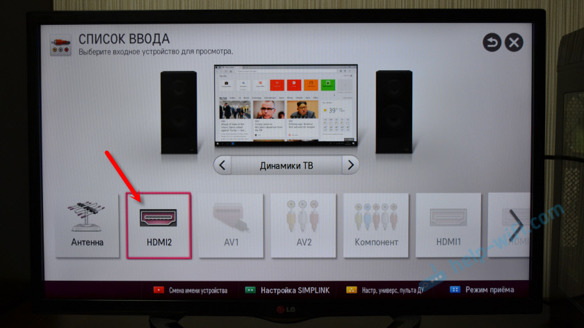 - Выбираем на телевизоре источник видео и настраиваем на ноутбуке программную часть.