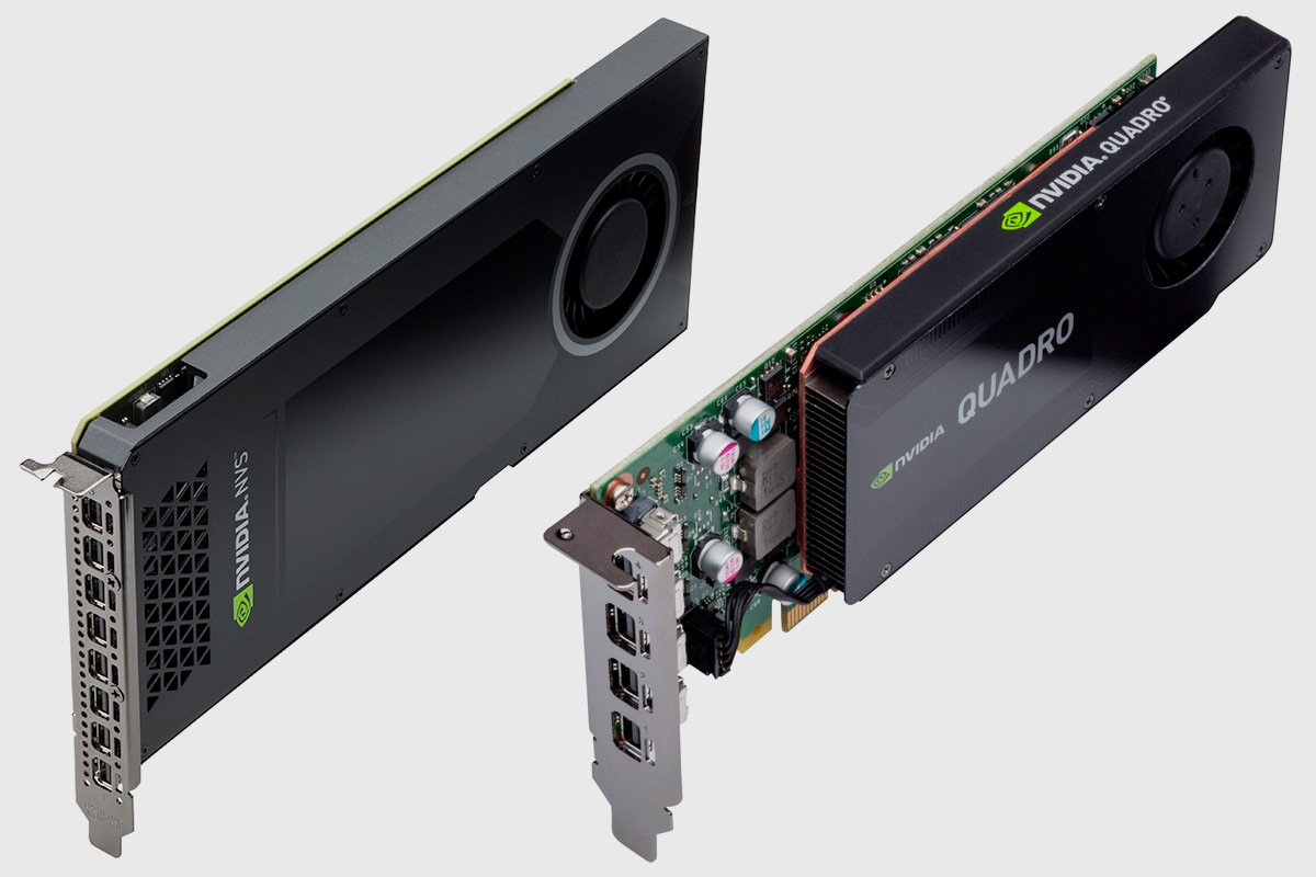 Доступные профессиональные видеокарты есть у французской компании PNY, они оснащаются 3-8 портами miniDP или HDMI. Также в комплекте идут переходники miniDP-DP или miniDP-DVI. Дополнительным плюсом будет значительное ускорение рендеринга трехмерных моделей, если вы занимаетесь 3D-моделированием.
