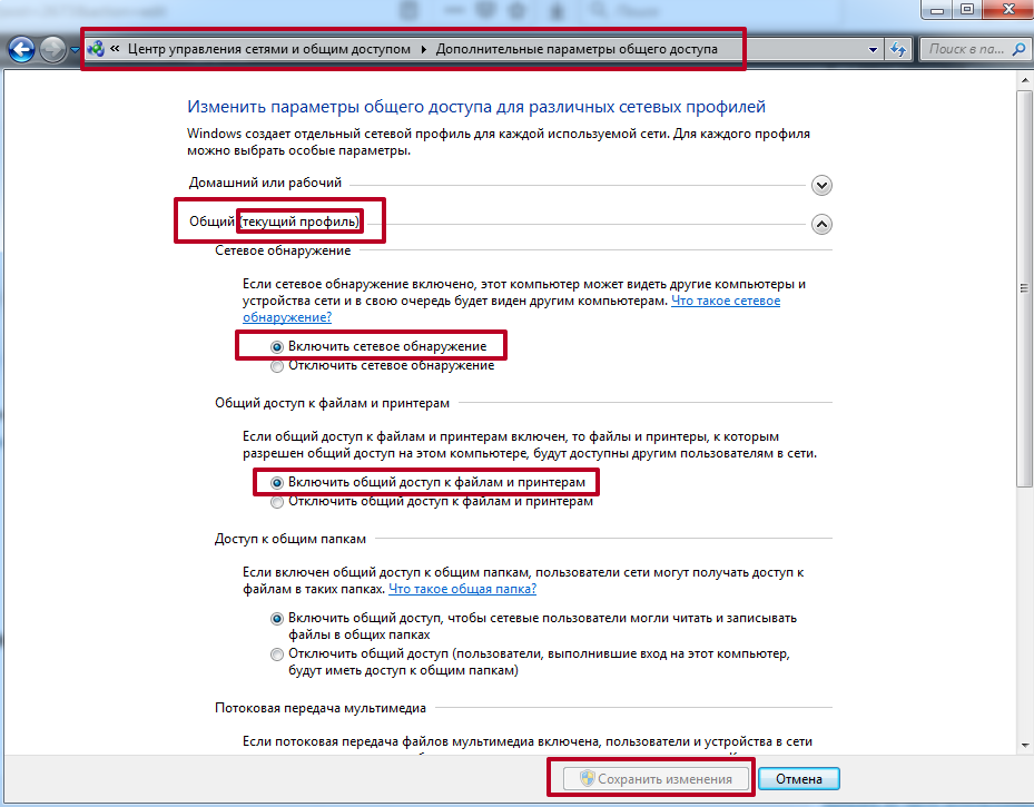 Шаг 3. Во всех сетевых профилях выбрать (выставить точки) на «Включить».