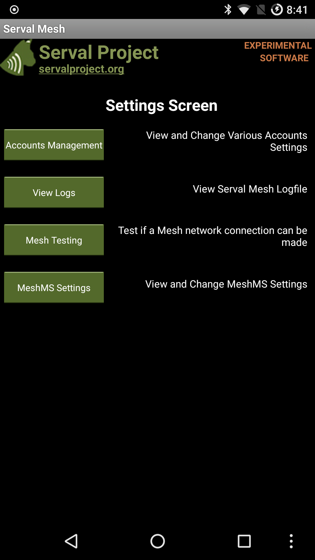 Serval представляет собой платформу для создания mesh-сетей. Ее основной компонент носит имя DNA и включает в себя реализацию протоколов Mesh Datagram Protocol (MDP), Voice over Mesh Protocol (VoMP), систему дистрибуции файлов Rhizome и систему обмена сообщениями MeshMS.