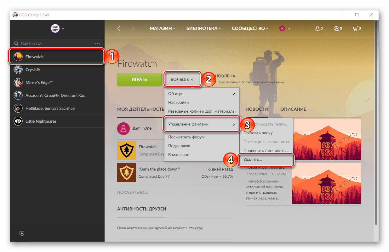- Выбрать игру, которую нужно убрать из аккаунта;