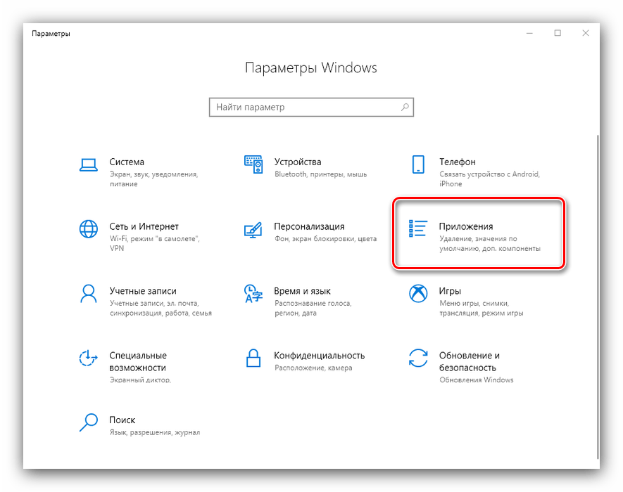 - Нажмите сочетание клавиш Win+I для вызова «Параметров» и выберите вариант «Приложения».