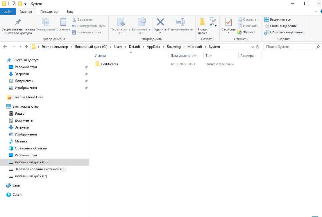 Теперь нам нужно скопировать сразу все сертификаты. В Windows 7, 8 и 10 они живут в директории — C:UserszeroxAppDataRoamingMicrosoftSystemCertificatesMy. Сохраняйте эту директорию.