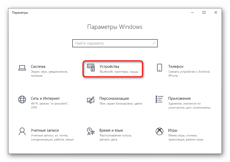 - Зайти в настройки операционной системы и выбрать «Устройства».