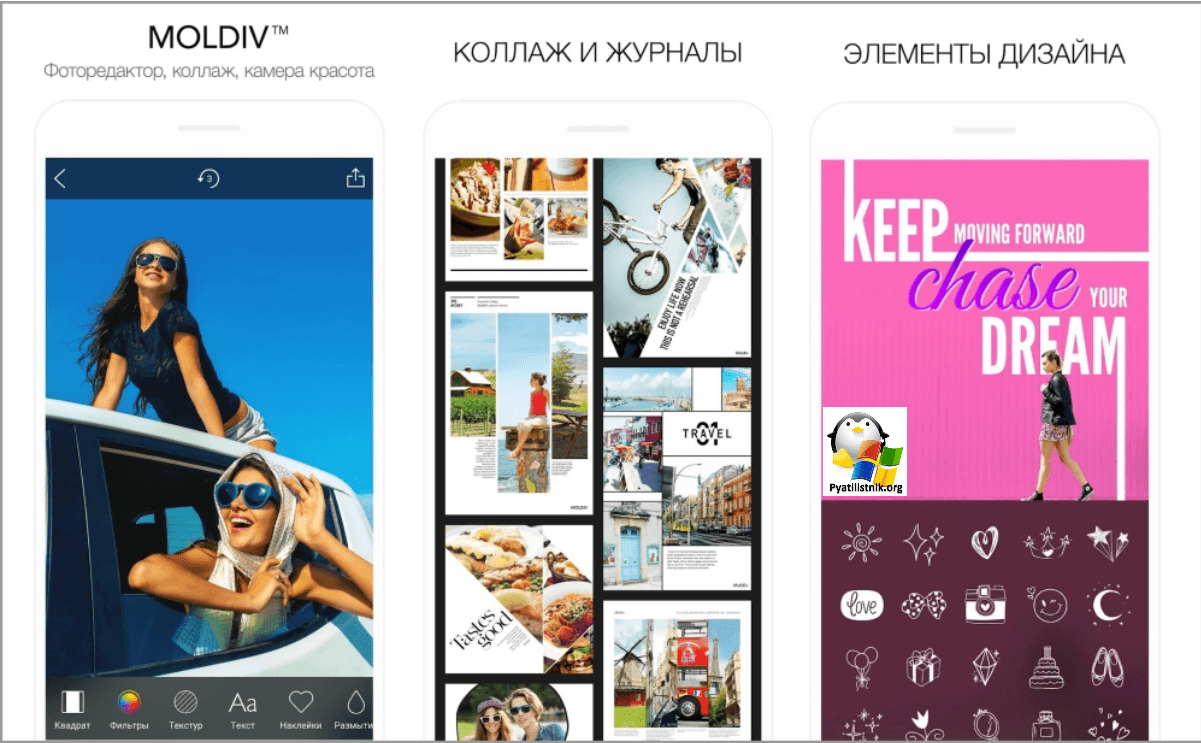Это удобное приложение, позволяющее создавать коллаж прямо на смартфоне. Здесь доступно сочетание до 18 разных фотографий, более 100 макетов рамок и огромный выбор наклеек и эффектов.