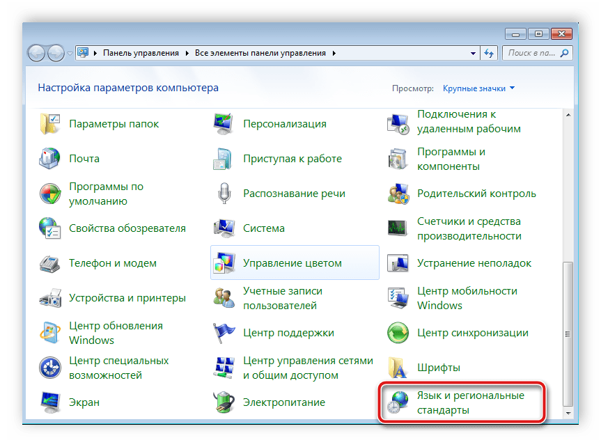 Обратите внимание! Есть и другой способ. Нужно открыть «Панель управления» и выбрать там «Языки и региональные стандарты»