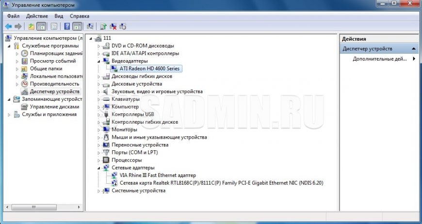 Откроется панель управления компьютером. Выберите пункт «Диспетчер устройств».