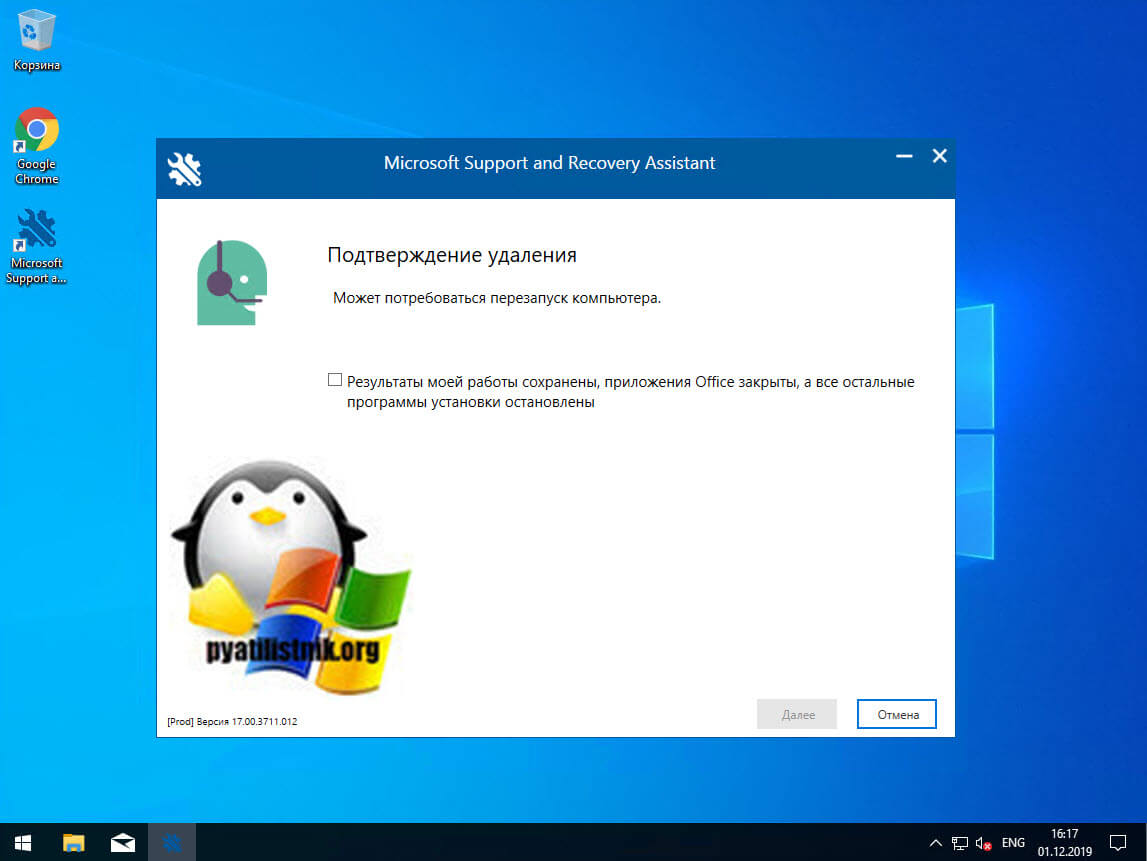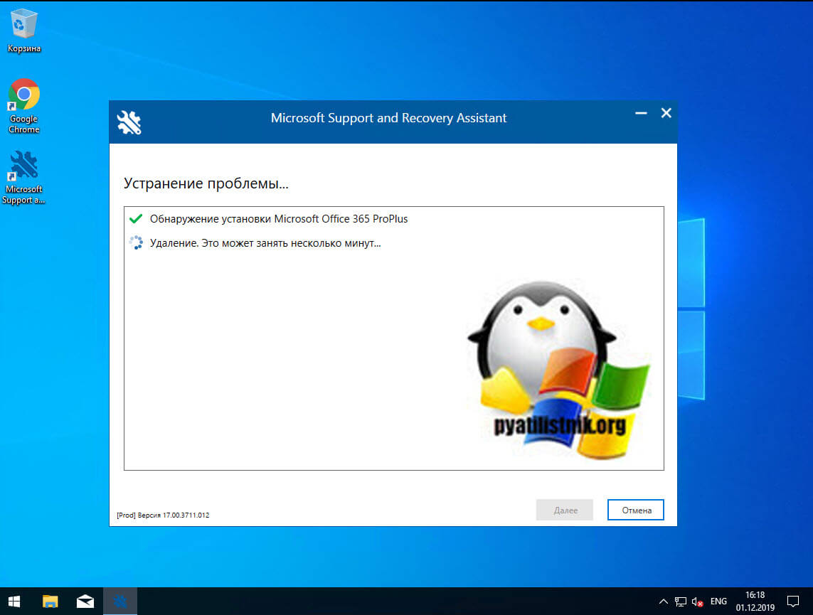 Вот так вот выглядит процесс удаления офиса 365 через Microsoft Support and Recovery Assistant