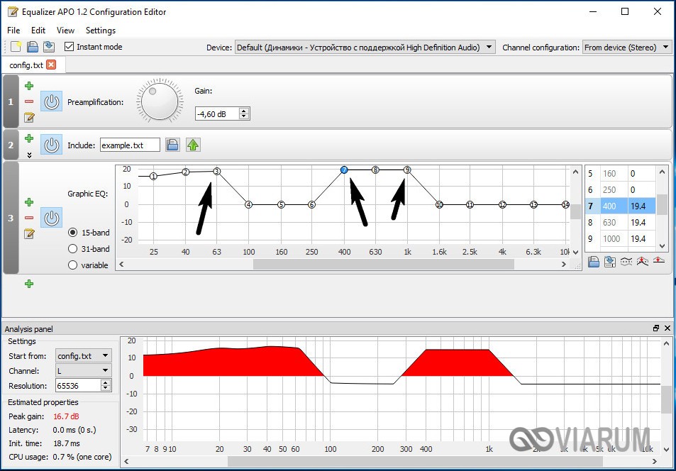 Все изменения становятся очевидны в режиме реального времени, настройки сохраняются автоматически, имеется функция сброса параметров к значениям по умолчанию (кнопка «Reset response»). Использование Equalizer APO – отличный способ увеличить громкость на ноутбуке, если уже максимум, кроме того, с помощью этой программы можно очень гибко настраивать тон и модуляцию звука.