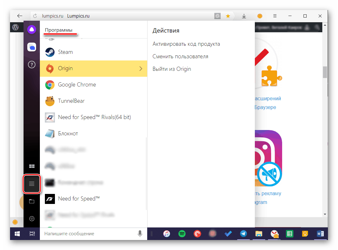 Ассистент от Яндекс может частично заменить собой системное меню «Пуск», а вместе с ним и «Проводник». Во вкладке «Программы» отображается список недавно запущенных приложений и игр, для некоторых из них доступно выполнение дополнительных действий.
